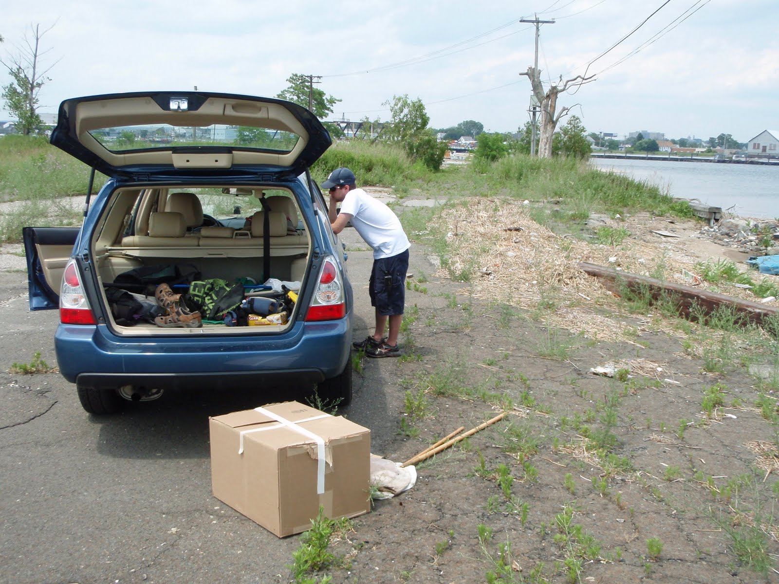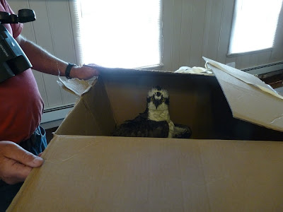 Below you can see me on the phone trying to find a rehab center that could take the Osprey. Shortly after, we loaded the box in the car and headed back to Stratford Point.