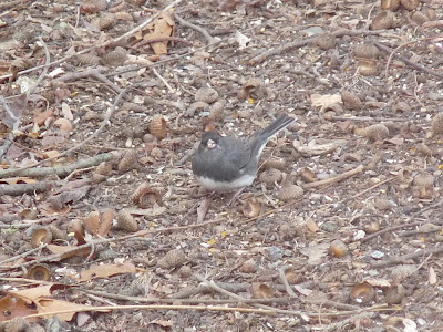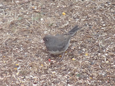 While I was home on Wednesday, I noticed I had at least 75 or so Dark-eyed Juncos around the yard and at my feeders. The night before I stumbled across a couple of old photos (below) that show this interesting Dark-eyed Junco in my yard on December 7, 2008.