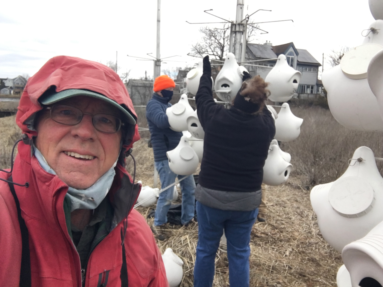 Frank Mantlik took a selfie with the Purple Martin crew at the Coastal Center. Connecticut Audubon staffer Jim Arrigoni and volunteer Lori Romick are in the background.