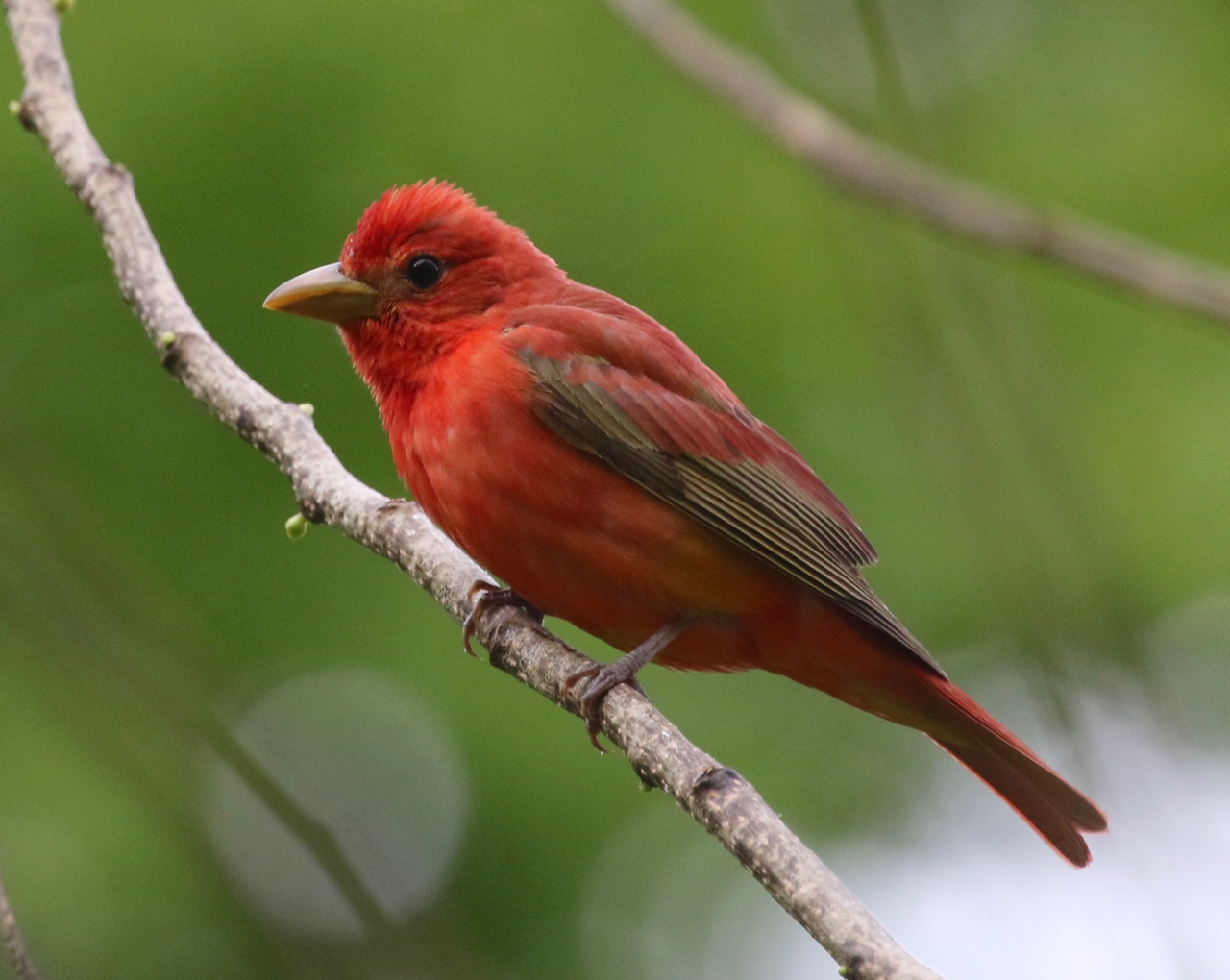 First Place: Male Summer Tanager, Branford, Connecticut. By Frank Mantlik (© Frank Mantlik). Paul Fusco said of this photo: “Nice, soft light and great color on this breeding plumage male make this a standout. Very tough bird to get in CT. Sharpness and detail are very good.”