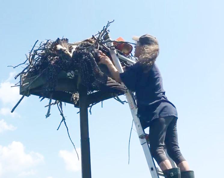This fall we will need to clean out the nest. It’s too dangerous to do it when the osprey are around. In fact, Betsy was taking a big risk in rescuing the young osprey as her mom was diving at the rescuers. Christine believes the number of people present prevented the female osprey from attacking the rescuers.