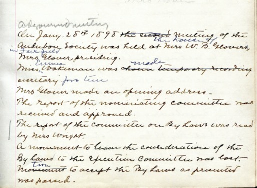 Minutes of a meeting held on January 15th, 1898, to decide to form an Audubon Society