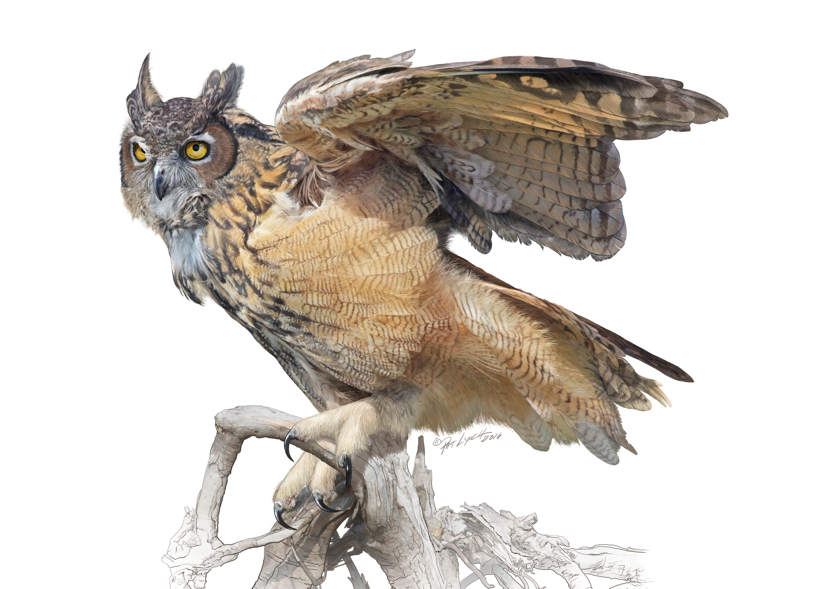 Great Horned Owl painting by Patrick J. Lynch.
