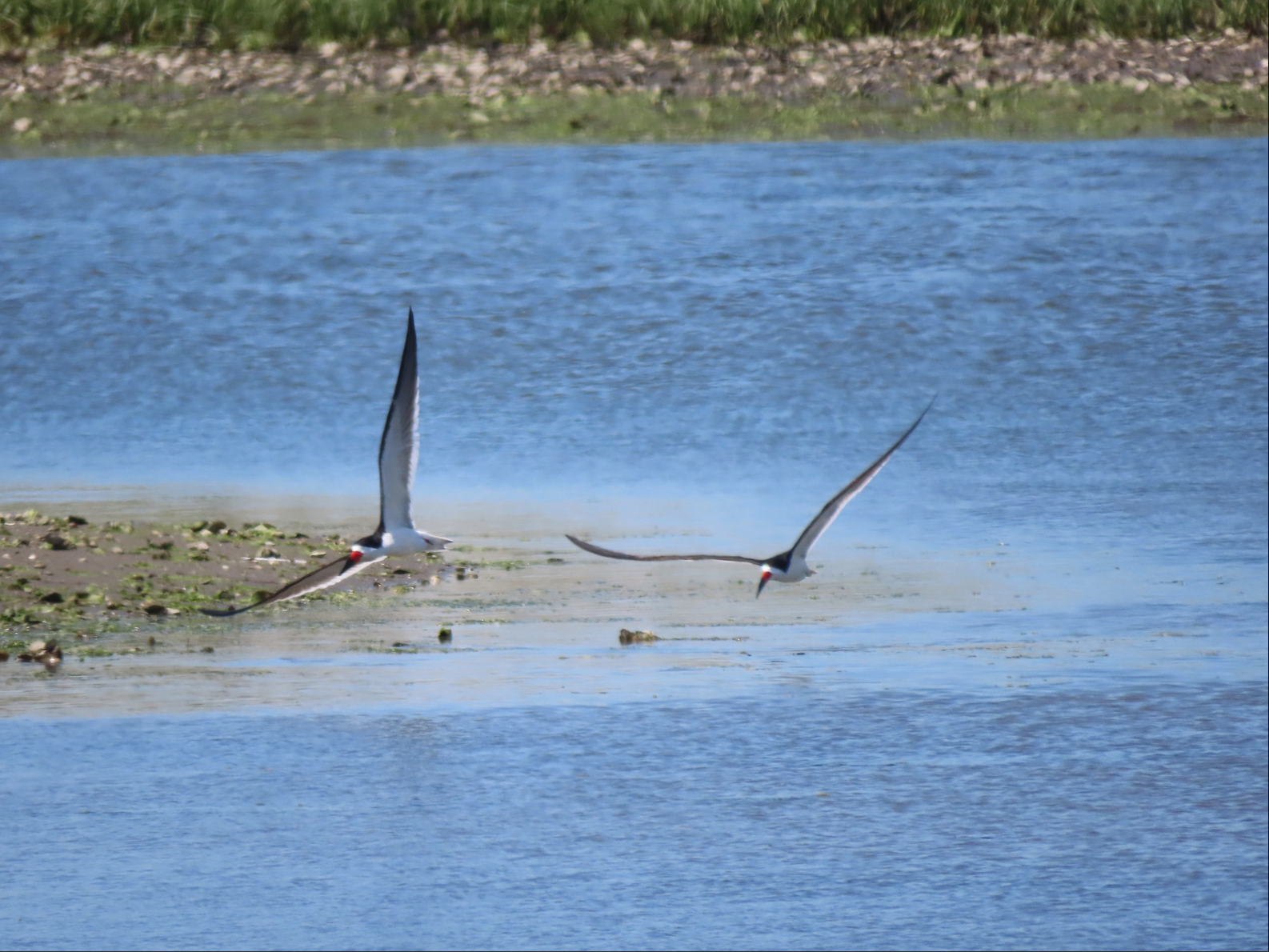 A pair of Black Skimmers gliding over the lagoon at Milford Point this week. Photo by Imani Rodriguez/.