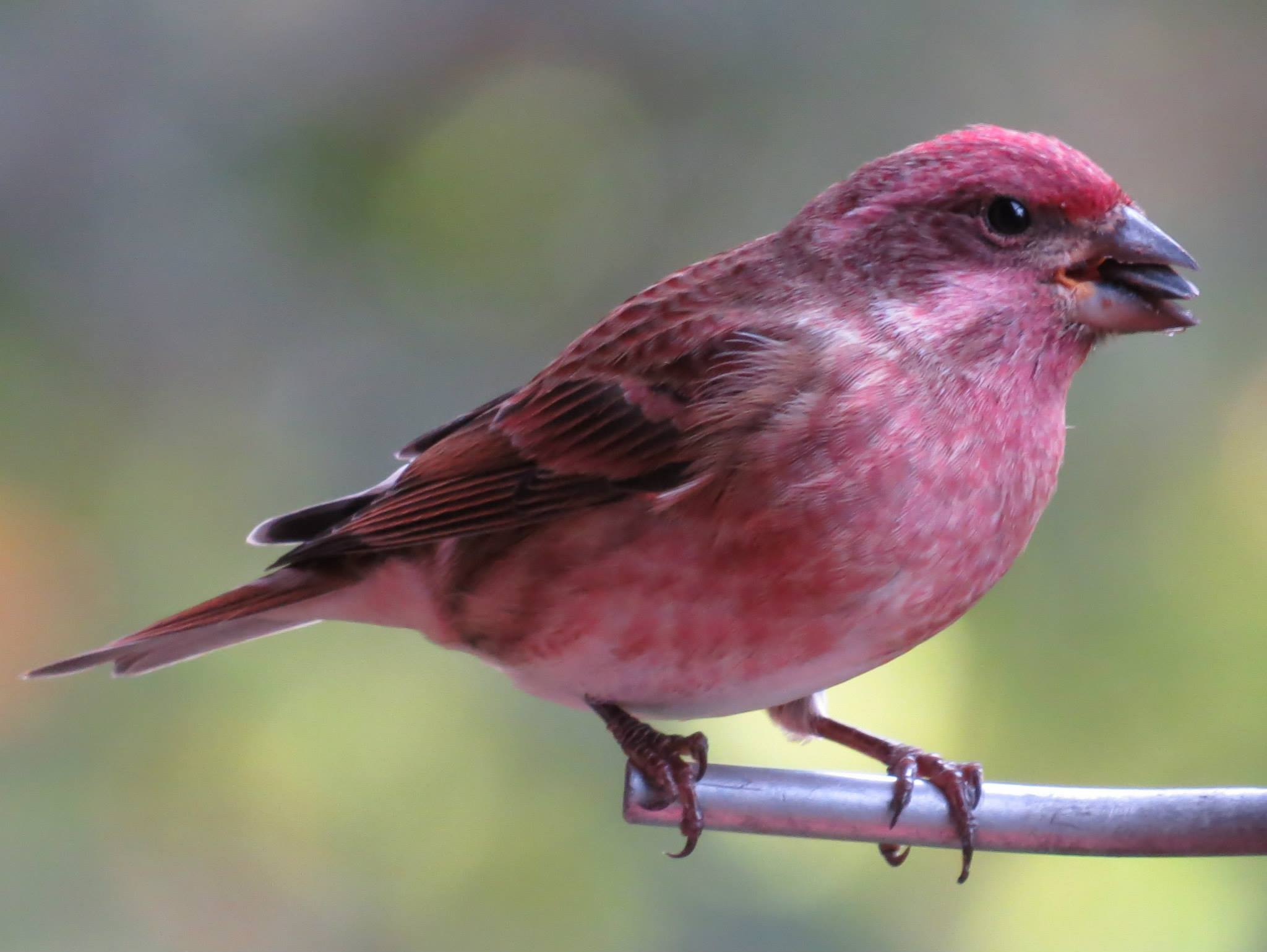 Purple Finches have a close relative that is far more common in this area, House Finches (Haemorhous mexicanus). You can tell the difference by plumage, bill shape and tail length.
