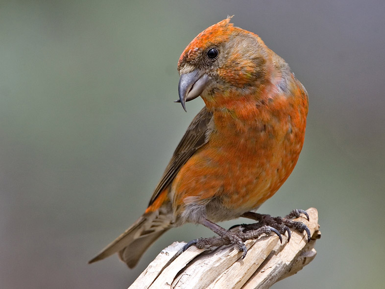 The Red Crossbills trademark bill crosses at the tip, which allows the species to efficiently separate the scales of conifer cones and extract the seeds on which they feed. In doing so, the crossbill will behave parrotlike, using its bill and feet to systematically move from branch to branch.