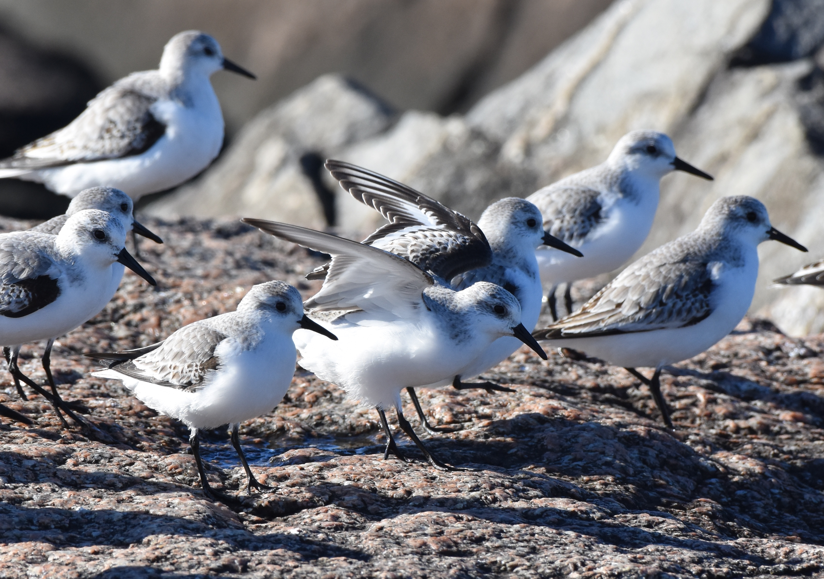 Nesting in the high arctic, Sanderlings can be found before and after the nesting season on temperate and tropical beaches all around the world. They love hard-packed beaches where they chase the waves back and forth. Look for them at Hammonnasset, Sandy Point, and the Milford Point Coastal Center, among many other possibilities.