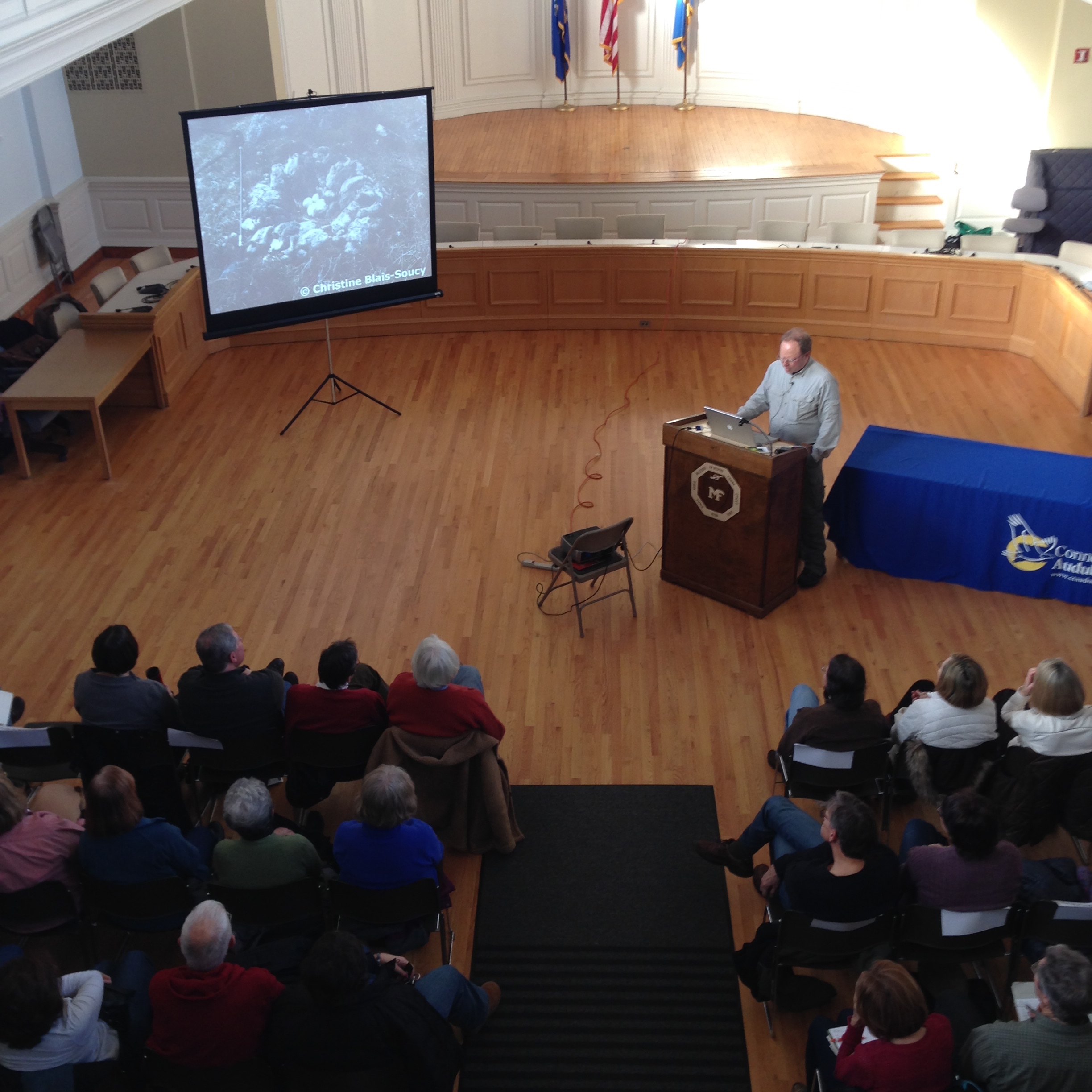 View from the Milford City Hall balcony during The Hidden Lives of the Snowy Owl. Connecticut Audubon Society photo.
