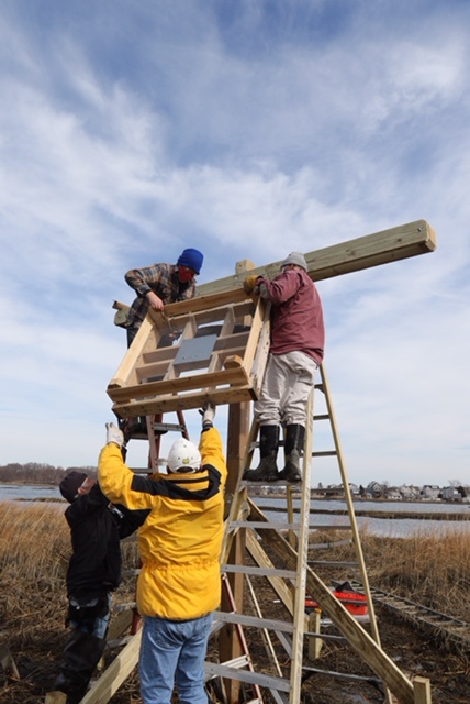 Thanks to a team of volunteers, and an enormously generous outpouring of donations from Connecticut Audubon supporters, a new Osprey nest platform went up in the marsh at the Milford Point Coastal Center on Wednesday, February 24.